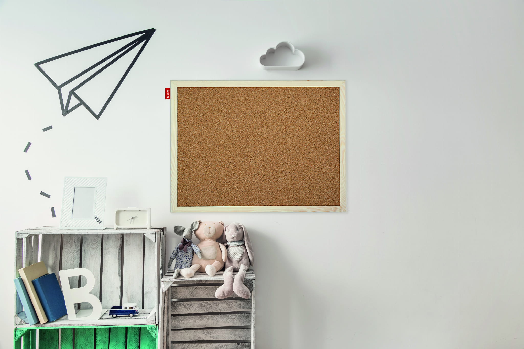 Połączenie naturalnego korka i drewnianej ramy sprawia, że tablica dobrze komponuje się zarówno z nowoczesnymi, jak i klasycznymi aranżacjami.