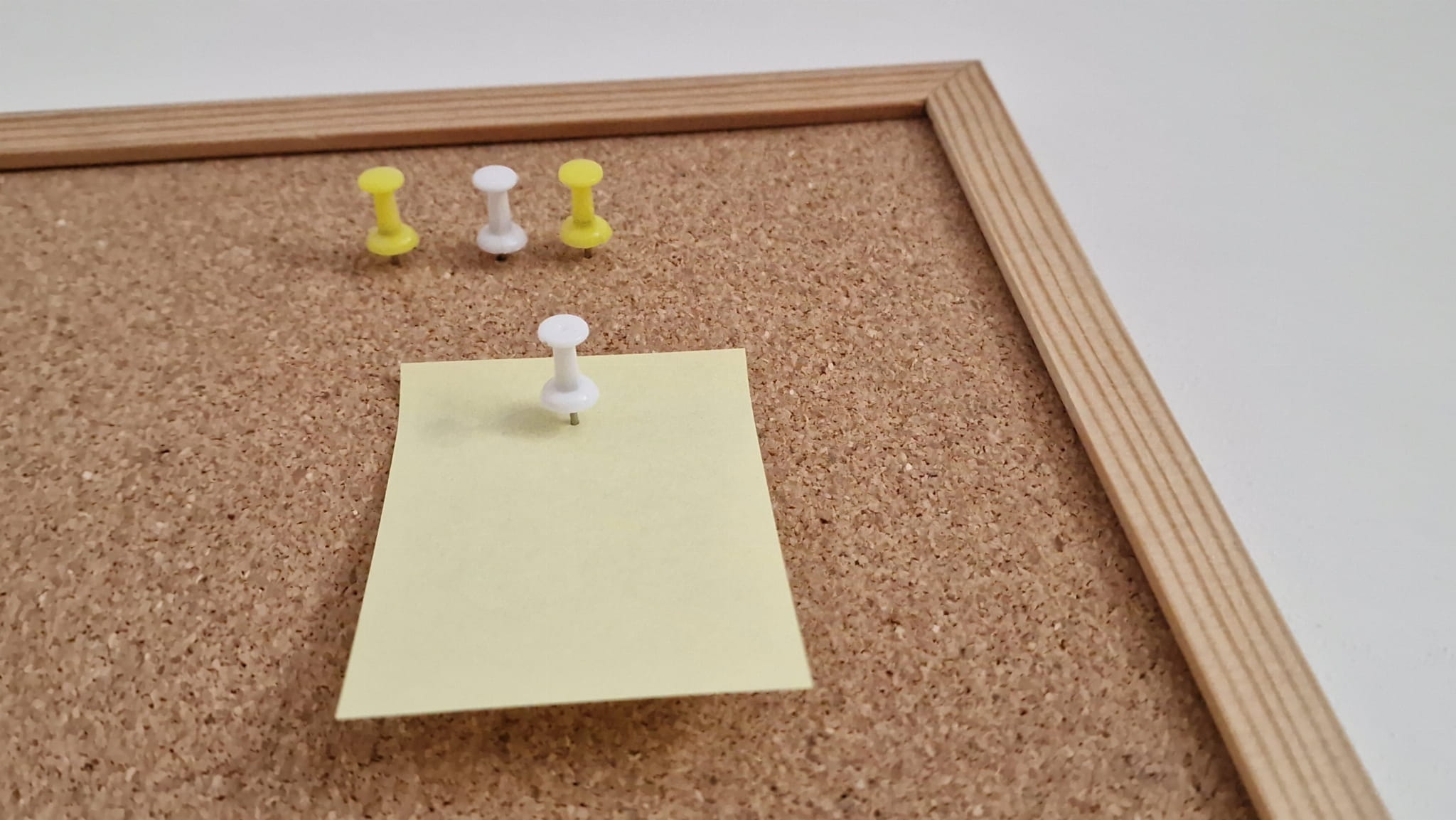 - Tablica wykonana z prasowanego portugalskiego korka klejonego do płyty pilśniowej. Dzięki jego właściwościom dziurki po wyjęciu pinezek się zamykają.